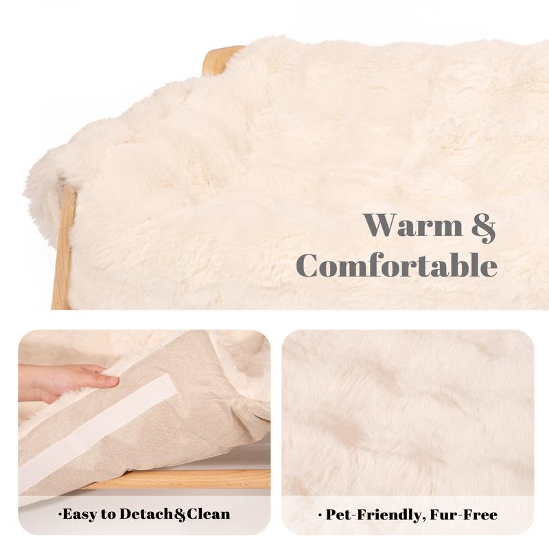 Furry Soft Cushion: The soft cushion of the pet bed is detachable, not easy to get pet hair on, easy to clean, and machine-washable. (Wash with water below 45°C, air dry, and avoid drying with a dryer.)